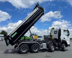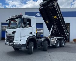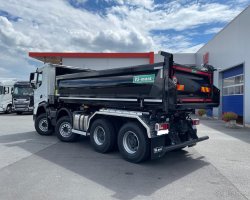 | Poznámka k financování | Motor 530, automat + s ručním režimem řazení, retardér, uzávěrky, nápravy 2x 9t + 2x 13t, přední pneu 385/65 R22.5, zadní 315/80 R22.5, vývody do soupravy 2x vzduch, 15pin + ABS, závěs 50 mm čep, 2x okruhy hydrauliky pro přívěsy, plné blatníky, nádrž 330L, sedadlo řidiče na vzduchu + výhřev, volant multifunkční kožený, chladnička, klima, rádio, telefon, střešní okno, zadní okno v kabině, sluneční clona, majáky, zadní pracovní světla, kryt pod chladičem, LED světla, mlhovky, bílá barva kabiny, korba S3 VS mont, HARDOX, Bordmatik levá bočnice, výška bočnic 1000 mm, zadní odsyp + aretace čela, plachta, sklopný nárazník, černá/šedá barva. |