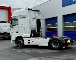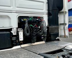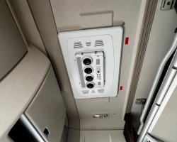| Vybavení | venkovní teploměr, palubní počítač, tachograf, otáčkoměr, nastavitelný volant, posilovač řízení, multifunkční volant, aut. klimatizace, nezávislé topení, výškově nastavitelné sedadlo řidiče, autorádio, hands free, satelitní navigace, imobilizér, boční spoilery, el. okna, el. zrcátka, vyhřívaná zrcátka, centrální zamykání, mlhovky, LED denní svícení, kabina vysoká, Super Space Cab, tempomat, tempomat udržující odstup od voz. vpředu, uzávěrka diferenciálu, pohon 4x2, aut. převodovka, motorová brzda, závěsné zařízení, regulace výšky podvozku, pérování ocel/vzduch, ABS, EDS, plní 'EURO VI', AdBlue, 2 lůžka, autochladnička |
