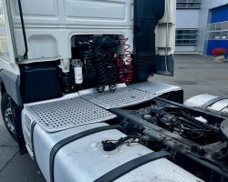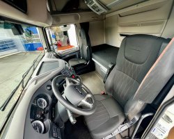 | Vybavení | venkovní teploměr, palubní počítač, tachograf, otáčkoměr, nastavitelný volant, posilovač řízení, multifunkční volant, aut. klimatizace, nezávislé topení, výškově nastavitelné sedadlo řidiče, autorádio, imobilizér, boční spoilery, el. okna, el. zrcátka, vyhřívaná zrcátka, centrální zamykání, mlhovky, denní svícení, LED denní svícení, kabina vysoká, Super Space Cab, tempomat, uzávěrka diferenciálu, pohon 4x2, aut. převodovka, motorová brzda, závěsné zařízení, regulace výšky podvozku, pérování ocel/vzduch, ABS, EDS, plní 'EURO VI', AdBlue, 2 lůžka, autochladnička |